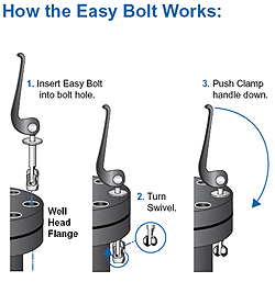 The Easy Bolt™ provides the function of conventional nuts and bolt sets, but uses a simple lever action instead of wrenches. The Easy Bolt fits through the flange bolt holes and is tightened by simply pushing the cam lever down. Easy Bolts are constructed of high quality stainless steels, with an investment cast lever.